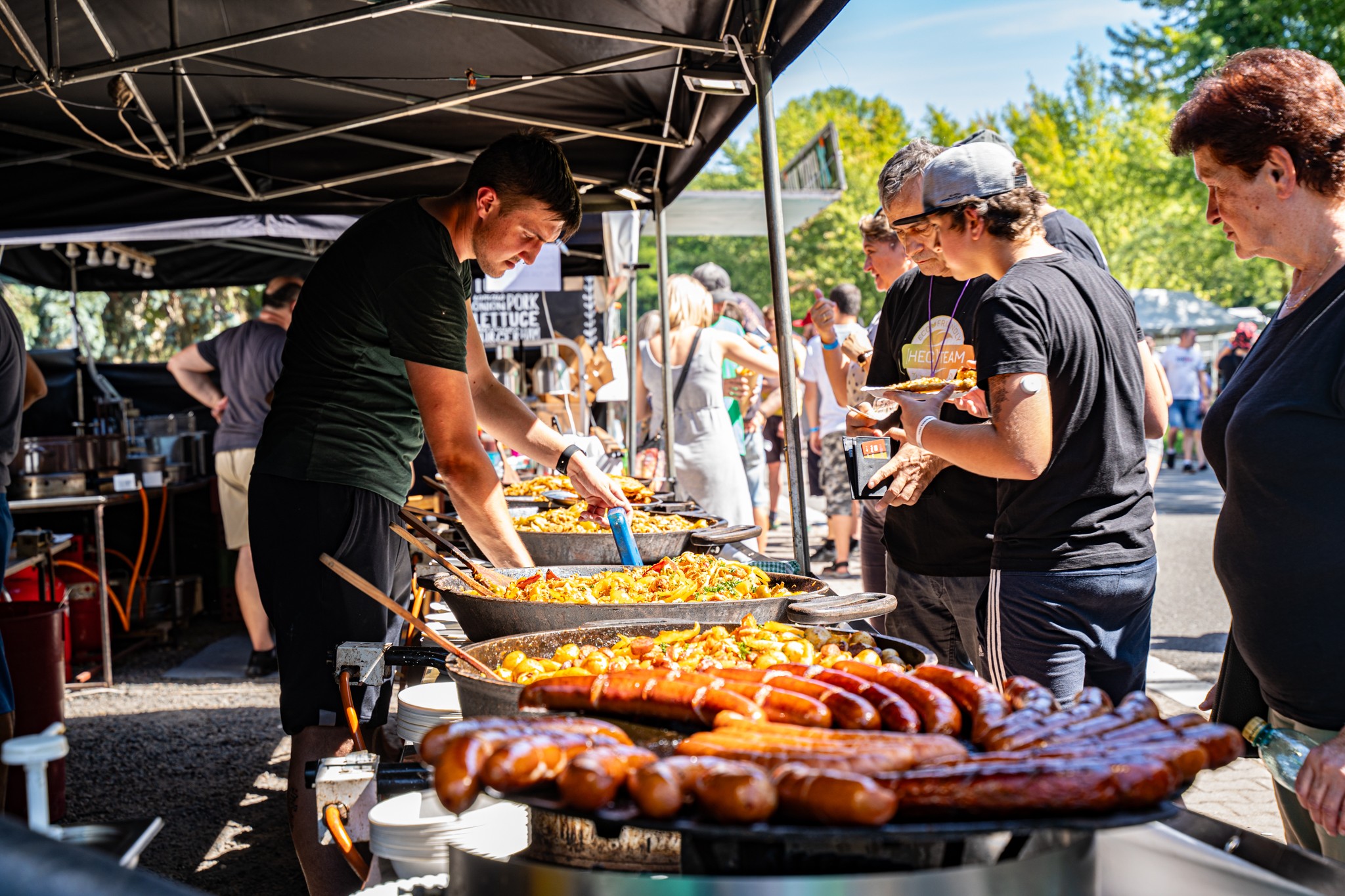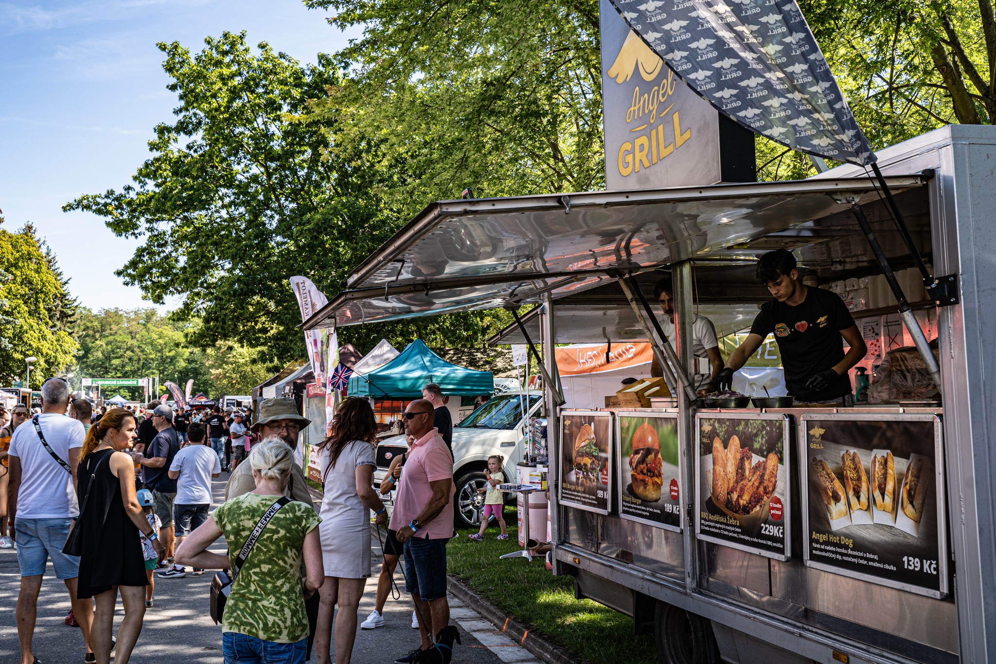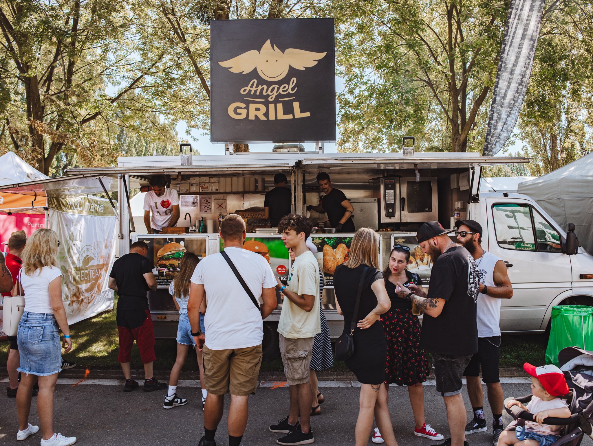 Hlady Vás trpět nenecháme, na hlavní festivalové ulici bude bude možné ochutanat množství amerických specialit. Nepřeberné množství stánků s Burgry na grilu, steaky a kotlety, Hot dogs s pořádnou přílohou a mnoho dalších specialit. Určitě si každý najde to své sousto. :-)